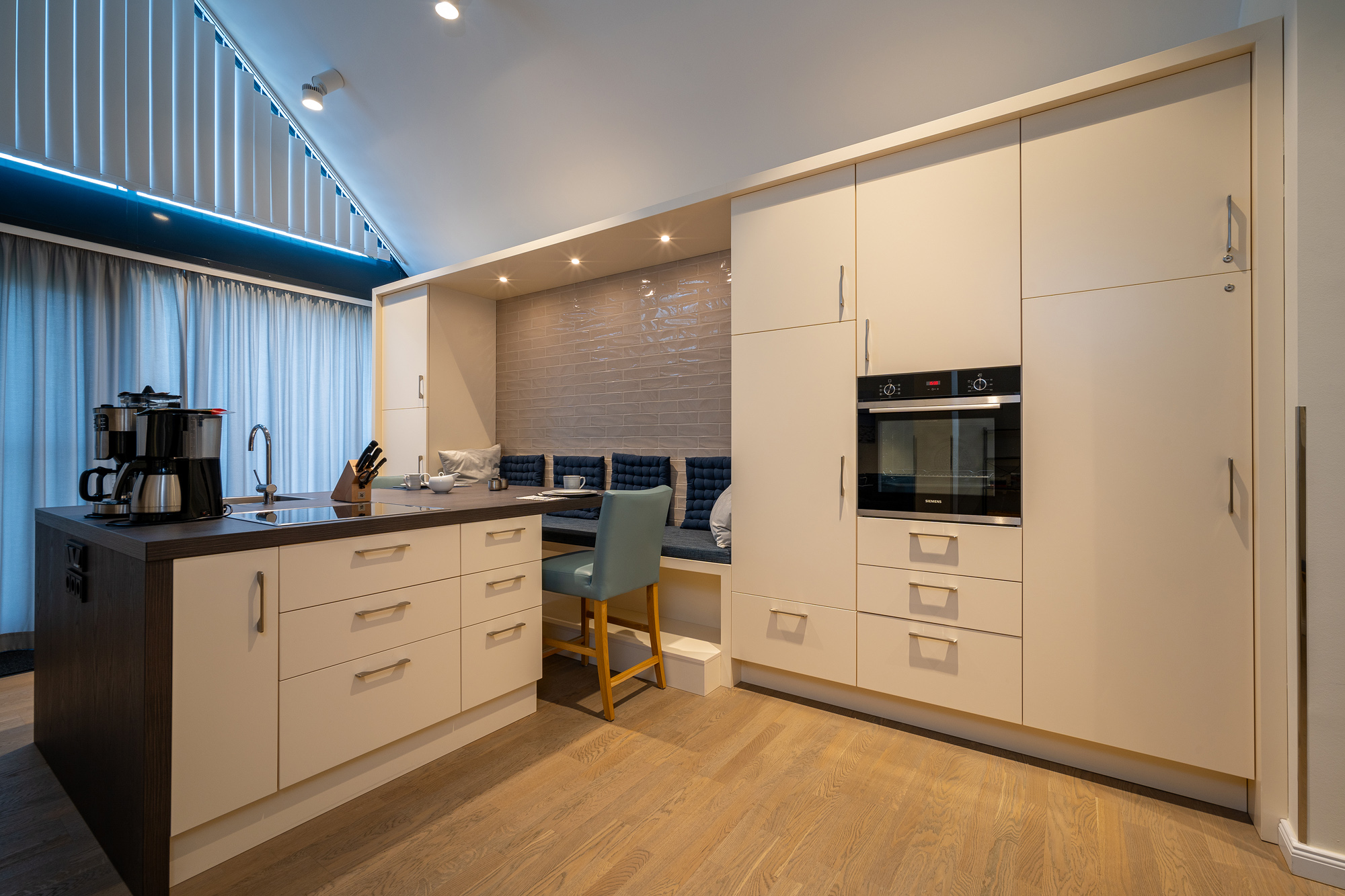 Die komplett ausgestattete Küche mit Herd von Siemens , Backofen Siemens, Spülmaschine Siemens, Kaffeevollautomat WMF, div. Kleinküchengeräte von WMF, 12 x Porzellan von Laura Ashley, Fondue WMF, Handrührgerät WMF, div. Gläser x 12.